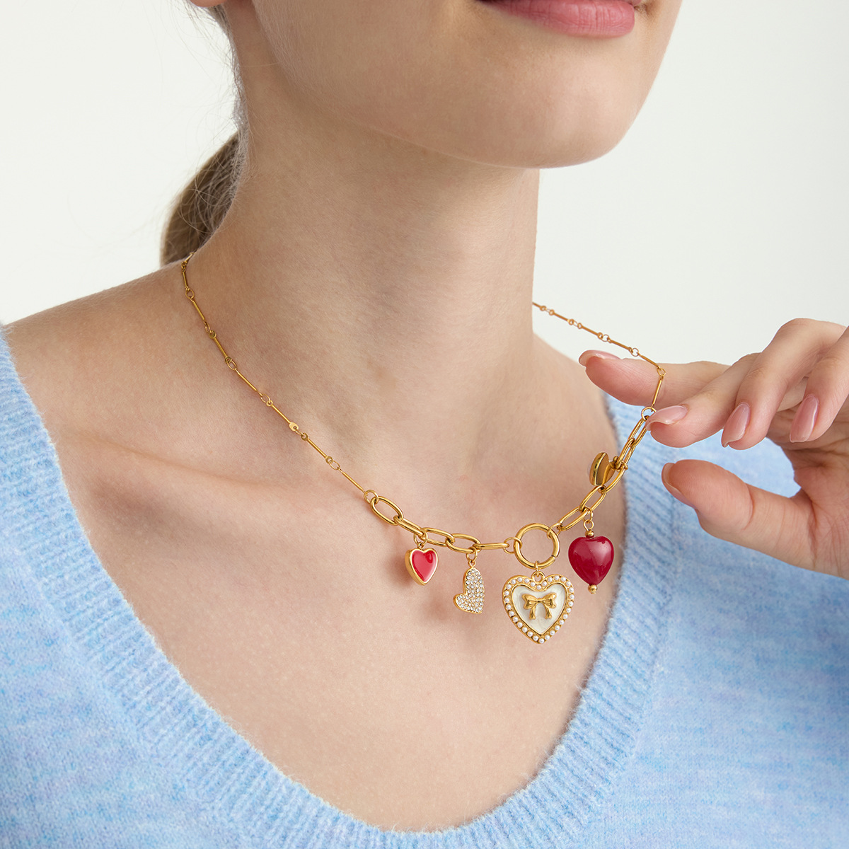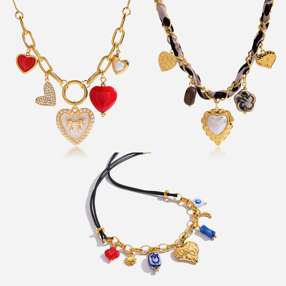 Retro Multi-Style Stainless Steel Heart Necklace Set