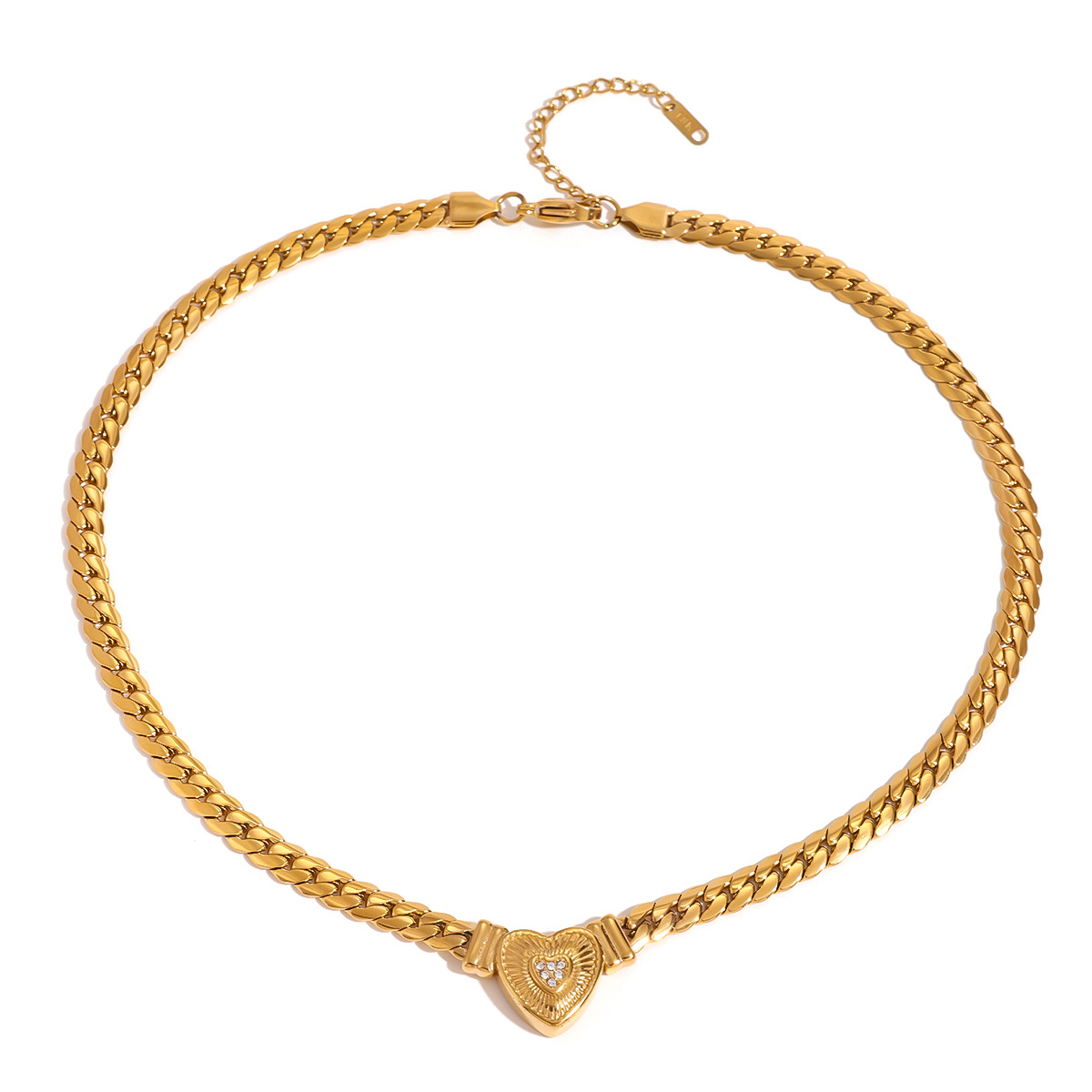 Stainless Heart Necklace With A Luxe High-End Look Diamond-Inlaid Clavicle Chain Titanium Steel Jewelry Piece